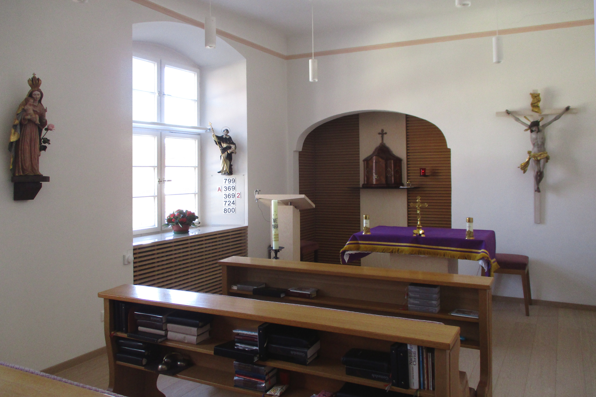 Um trotz kleiner werdender Zahl weiterhin die Nähe einer klösterlichen Gemeinschaft leben zu können, zogen sich die Schwestern aus der Weitläufigkeit ihrer Anlage auf einen kleineren Bereich im Obergeschoß zurück. Damit wurde für die Eucharistiefeier und das mehrfach tägliche Chorgebet die Gestaltung eines neuen Andachtsraums nötig.